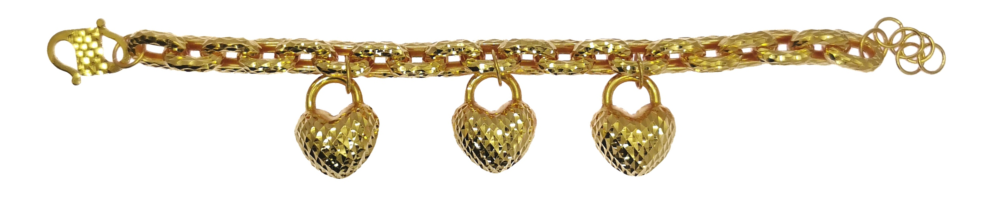 Rantai Tangan O Pahat Gantung Hati 3D 批珍珠圈吊3粒批杏仁手链