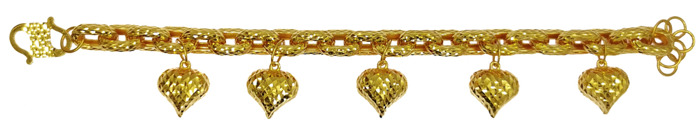 Rantai Tangan O Pahat Gantung Hati 3D 批珍珠圈吊5粒批杏仁手链